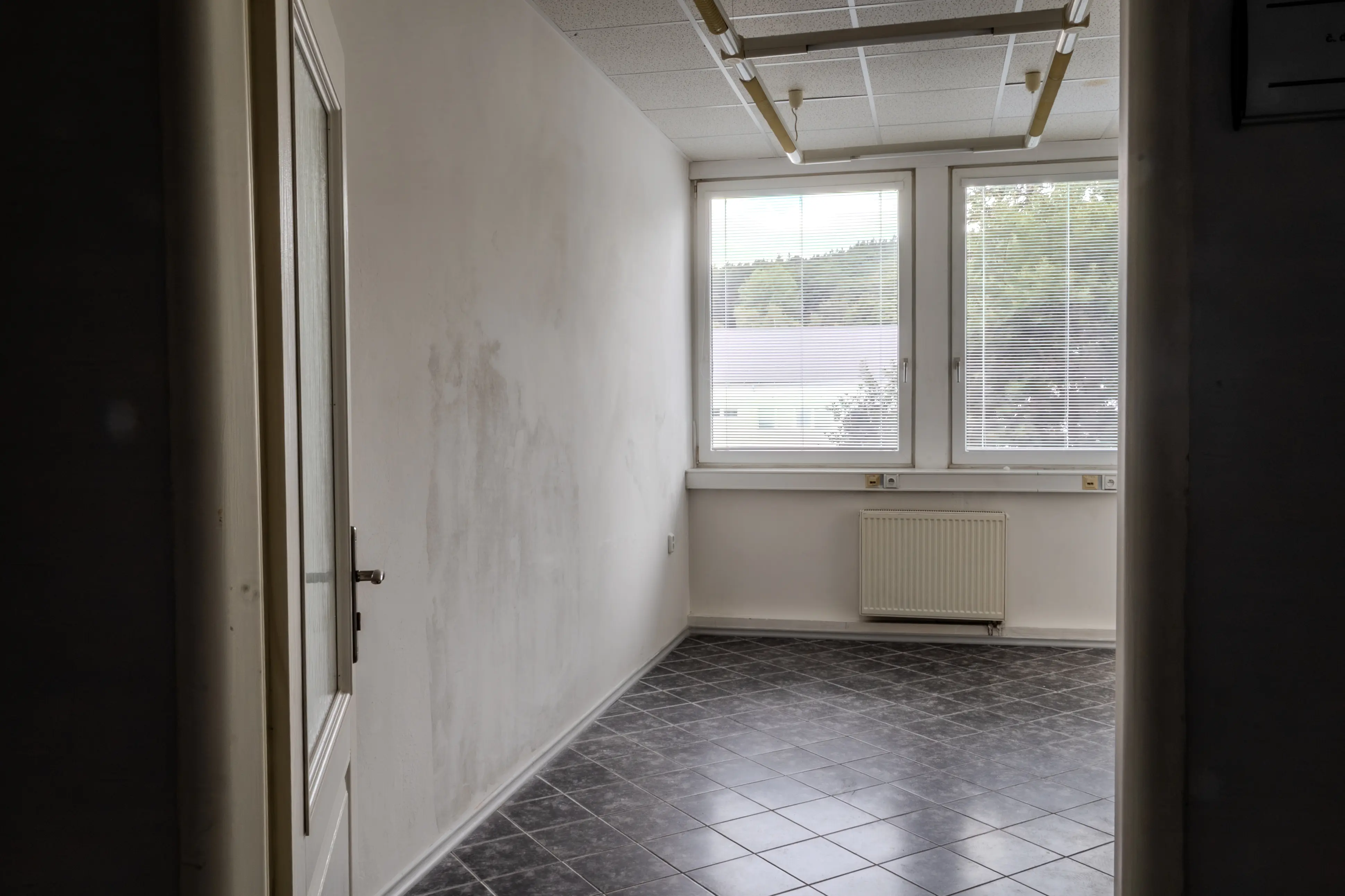 Velká okna poskytují dostatek přirozeného světla a pěkný výhled na zeleň v okolí města. Prostor je flexibilní a lze jej přizpůsobit různým potřebám, ať už hledáte otevřený prostor pro týmovou práci nebo soukromé kanceláře pro individuální práci.